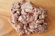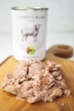 Jehněčí maso 70 % (z plemene Charollais), zeleninový vývar 28,8 %, lněný olej 0,2 % (za studena lisovaný).