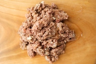 Selečí maso (z plemene Landrasse) 40 %, zeleninový vývar 28,8 %, hovězí maso (z plemene Angus) 30%, slunečnicoý olej 0,2 % (za studena lisovaný).