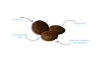 ANALYTICKÝ OBSAH: Hrubý protein 24 %, Hrubý tuk 14 %, Hrubá vláknina 3,2 %, Hrubý popel 6,9 %, Vápník 1,1 %, Fosfor 0,85 %, Sodík 0,15 %, Vlhkost max. 10 %, Metabolizovatelná energie: 3790 kcal/kg.