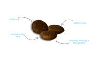 ANALYTICKÉ ZNAKY: Hrubý protein 25%, hrubé oleje a tuky 14%, hrubá vláknina 3,2%, hrubý popel 6,8%, vápník 1,1%, fosfor 0,85%, sodík 0,15%, vlhkost 10%, Metabolizovaná energie: 3780 kcal/kg.