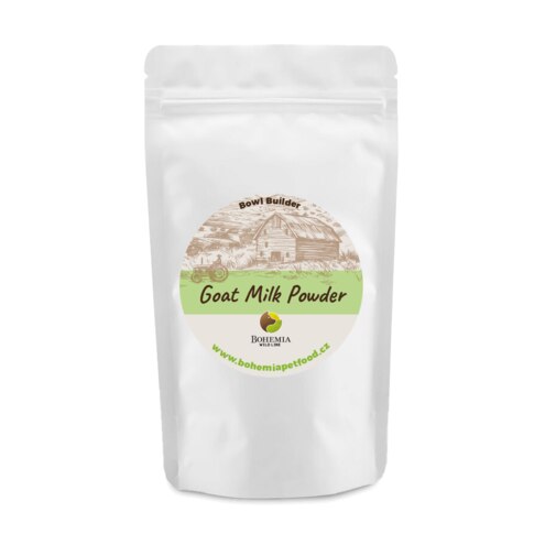 Goat milk powder BOWEL BUILDER vylaďte si krmnou dávku jak po chuťové tak nutriční stránce. Doporučujeme přidávat štěňatům pro kvalitní tvorbu kosterního aparátu, ale i dospělým a starým psům pro posílení imunitního systému.