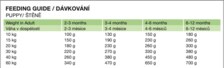 NÁVOD K POUŽITÍ: Jídlo podávejte suché, nebo zalité vodou. Po úvodním období krmte svého psa denními dávkami podle hmotnosti psa na tabulce. Doporučená denní porce je pouze orientační. Množství denního krmiva závisí na kondici a věku psa. Pokud má pes nadváhu, snižte denní porce o 10 %. Pokud má pes podváhu, zvyšte denní dávku o 10%. Vždy by měla být k dispozici čistá, čerstvá voda. Skladujte na suchém místě.