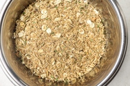 Mit heißem Wasser 0,5–1 cm über der Mischung übergießen, einige Minuten ziehen lassen und abkühlen lassen. Auch wenn es sich um Alleinfutter handelt, können Sie Dosenfleisch von Bohemia oder andere Zutaten nach Belieben hinzufügen.